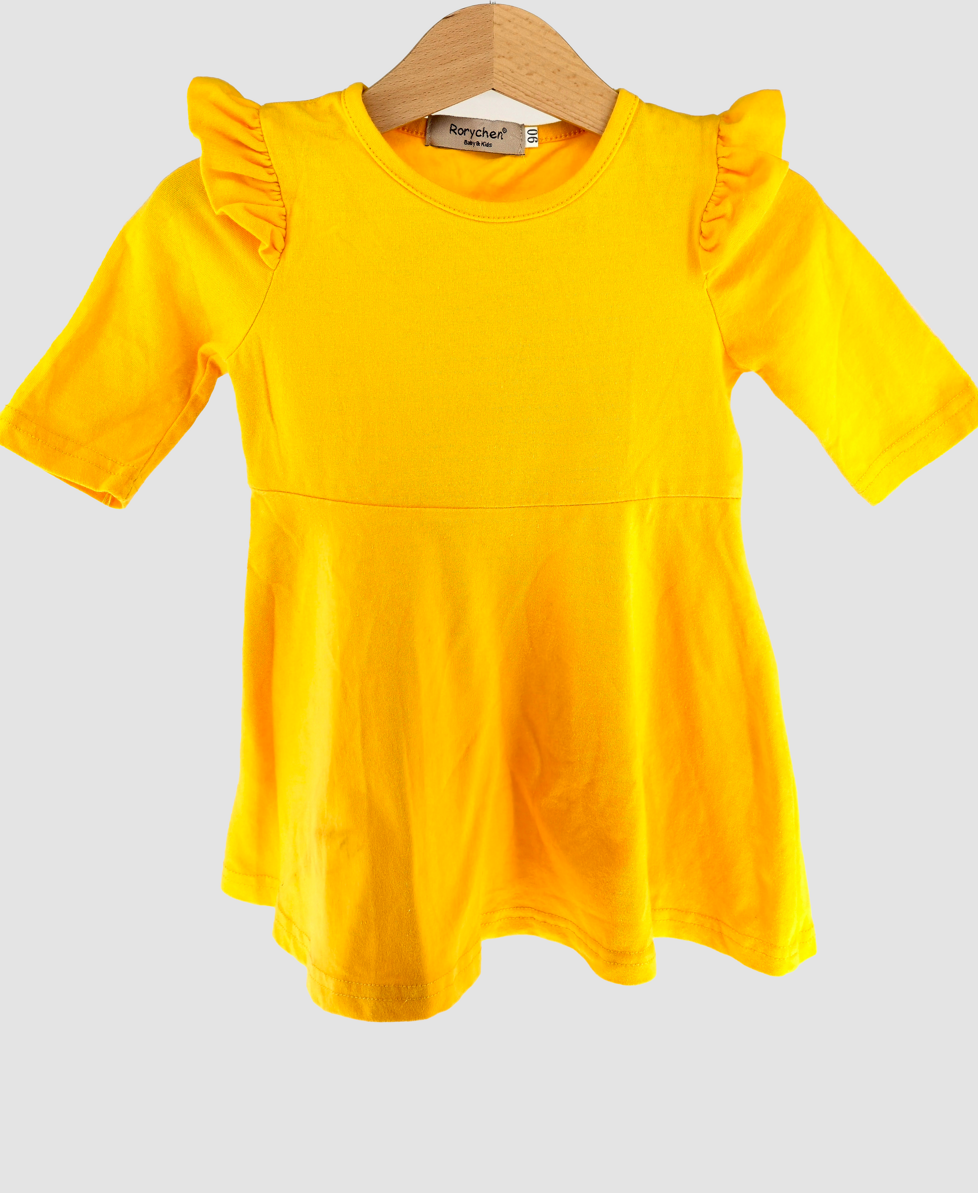 - Жълта рокля с 3/4 ръкави