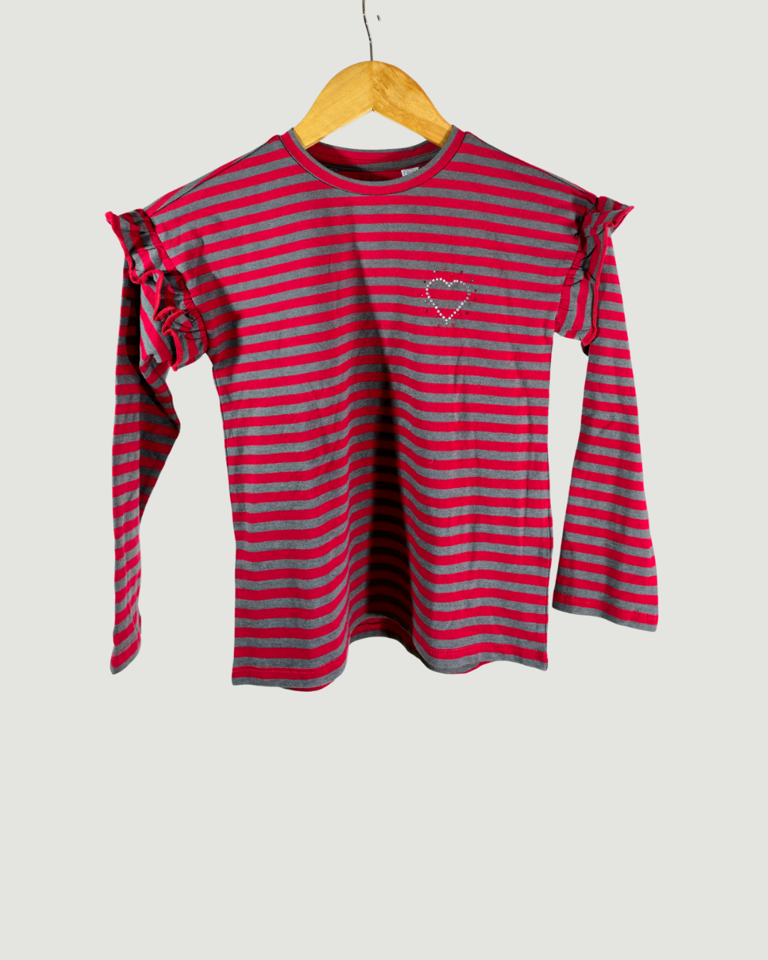 - Червена раирана блуза с лепени камъчета сърце