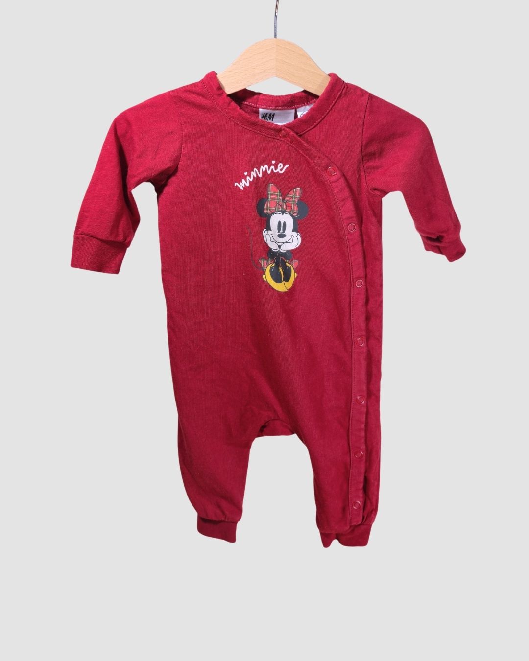 Червена пижама за бебета с дълги ръкави и крачоли и принт Мини Маус.