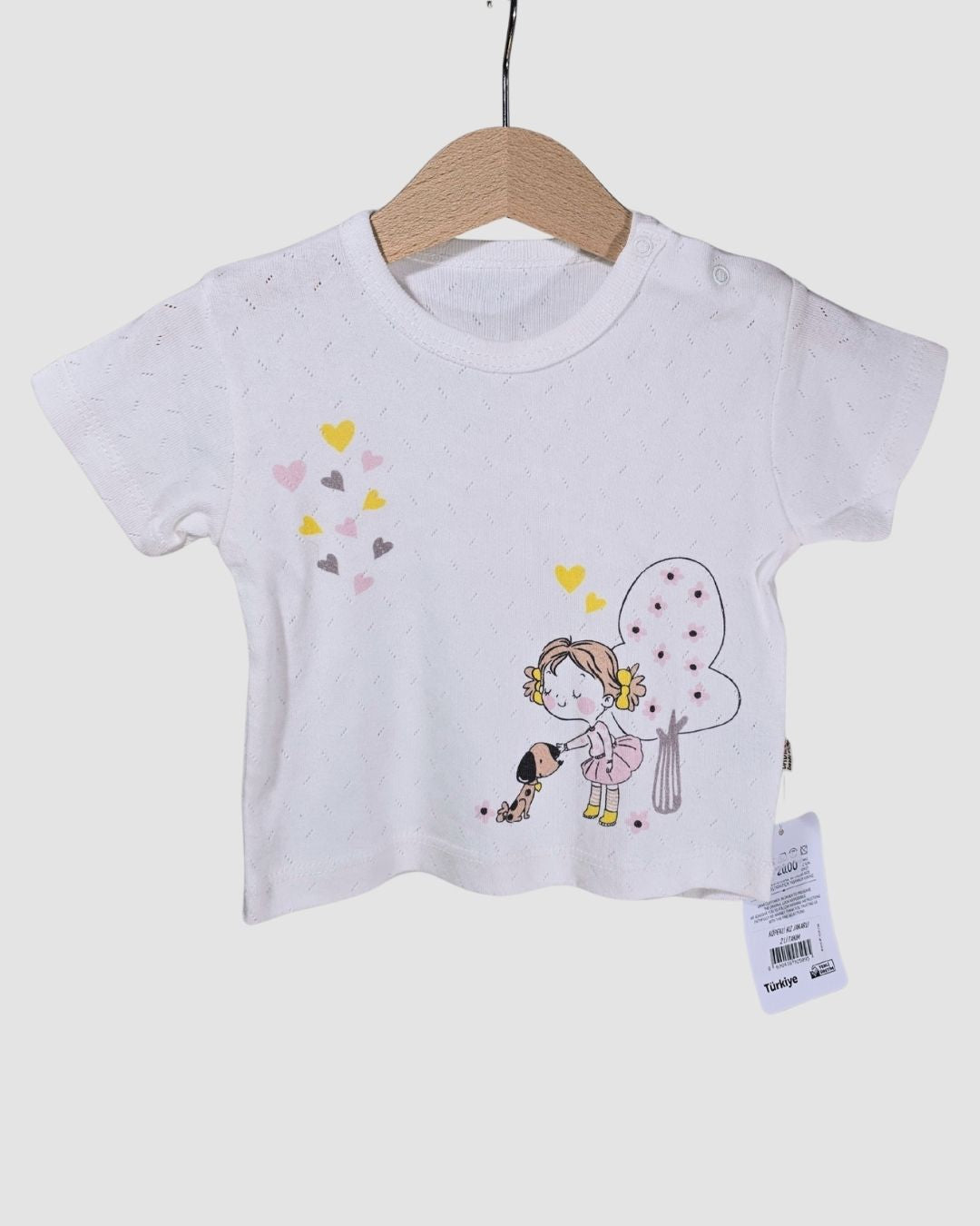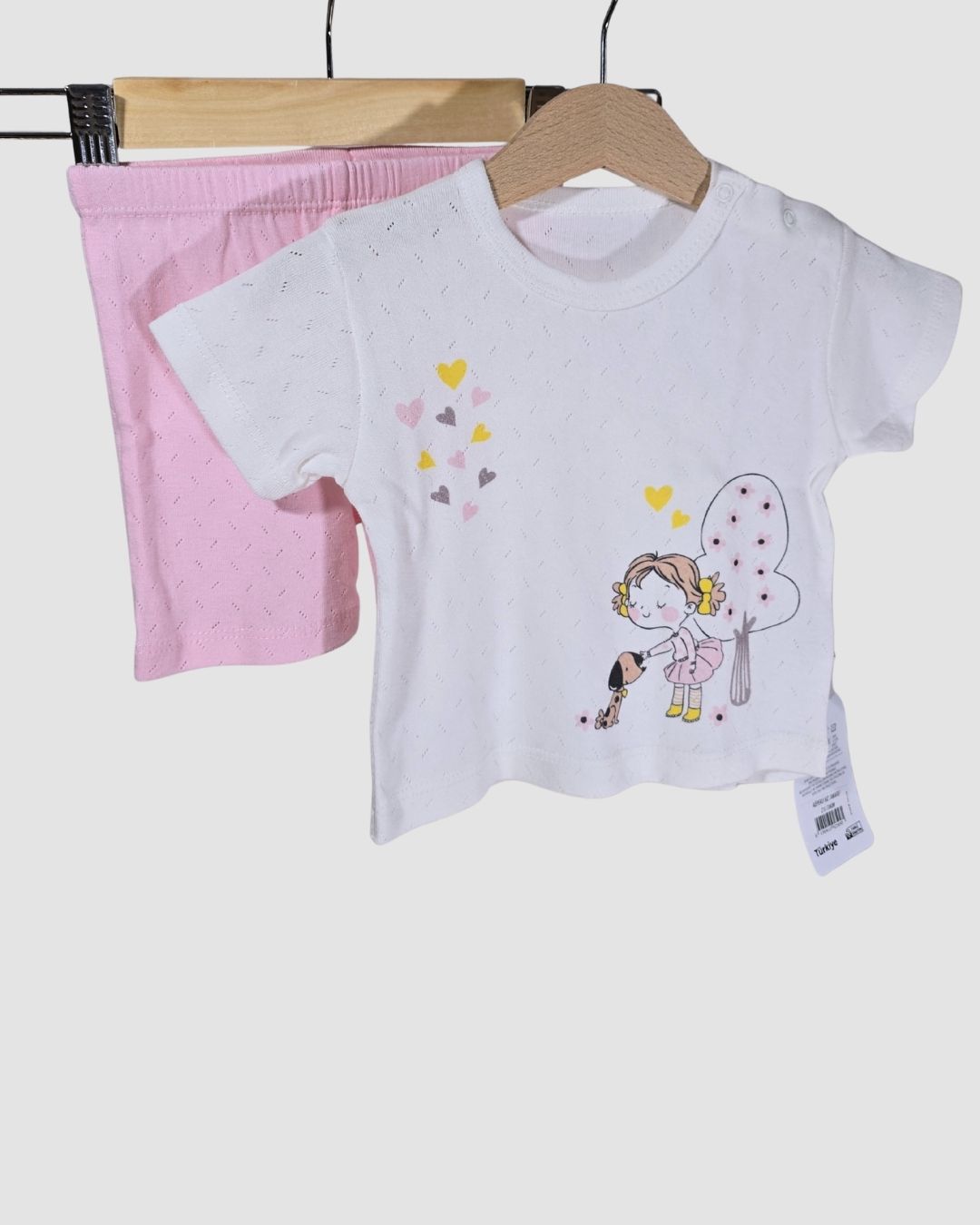 Комплект от памучна тениска и къси панталони, подходящи за момиче.