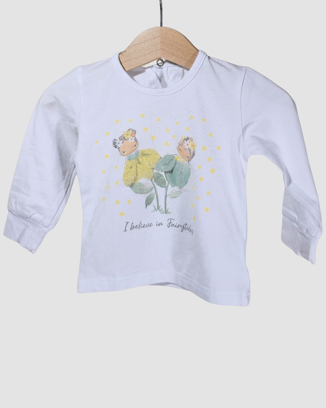 Бяла блузка с дълъг ръкав и принт на феи.