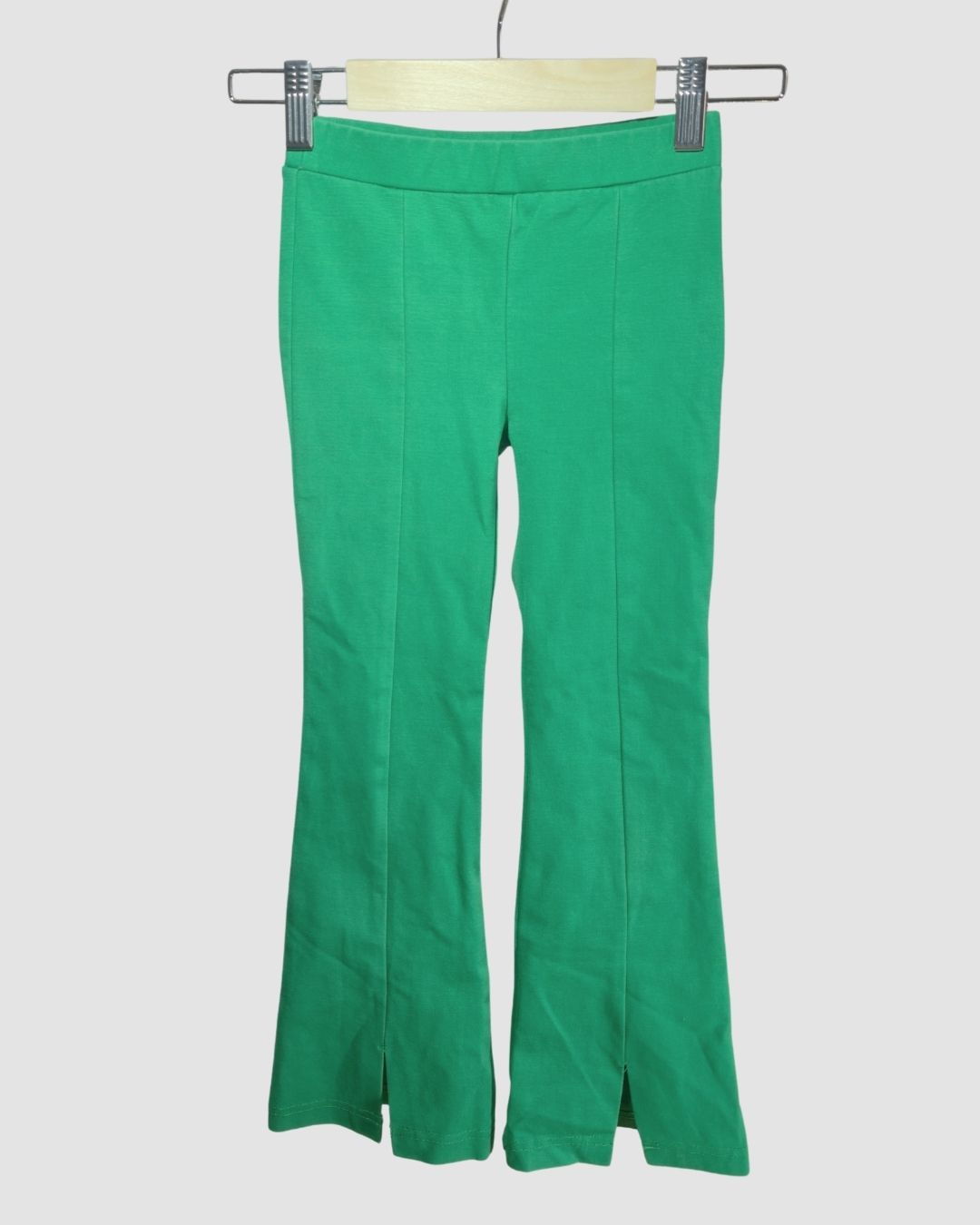 Зелен панталон с разкроени крачоли и цепки отдолу.