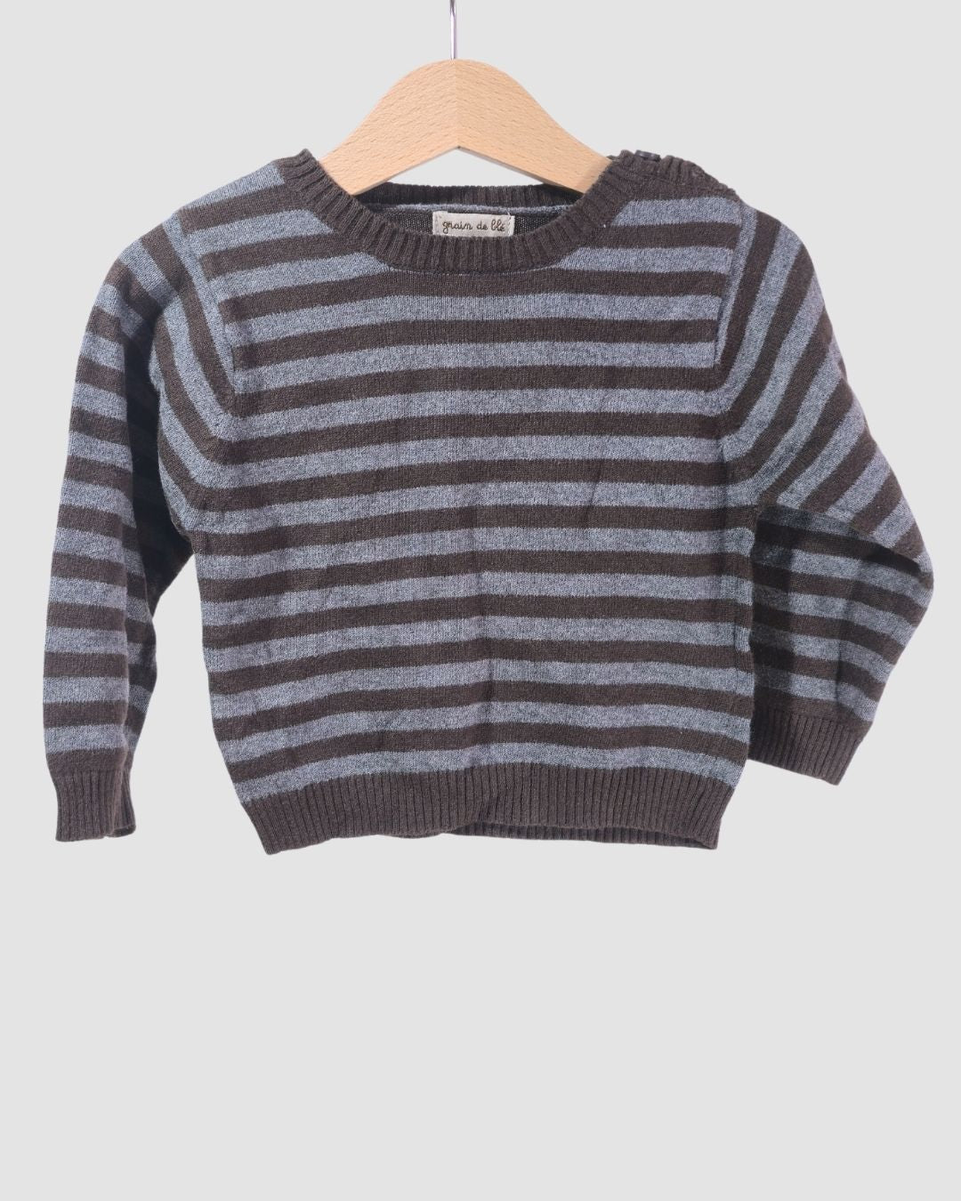 Пуловер на сиво и кафяво райе.